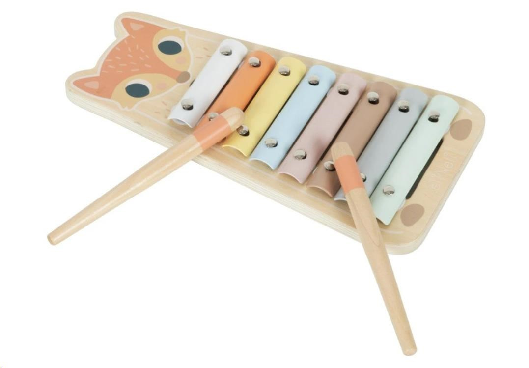 XYlofón pre deti patrí medzi klasické hračky, ktoré by nemali chýbať v žiadom detskom izbičke, hracom kúte ani v škôlke. Táto hudobná hračka v podobe roztomilej líške motivuje deti ku hre a určite prebudí v deťoch lásku k hudbe, ktorá môže prerásť do celoživotnej vášne. Vďaka dreveným paličkám, ktoré sú súčasťou dreveného xylofónu, môžu deti do farebných dosiek poklepať a skúmať, aké zvuky ktorá farbička vydáva. Naučia sa rozpoznávať farby, rozlišovať rôzne zvuky. Neutrálne pastelové, prevažne prírodné, farby a zrzavá líška dodávajú xylofónu lákavý vzhľad a originalitu. Pri hre na xylofón deti zdokonaľujú jemnú motoriku a ďalšie zručnosti, stimulujú zmysly.