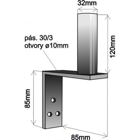 Základňa: pásek 85x30x3mm, uchytenie v troch bodoch