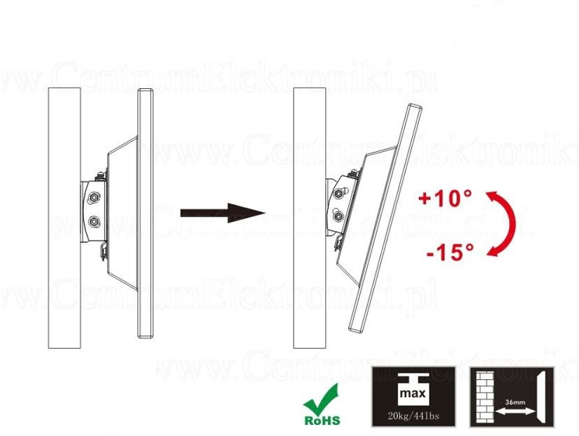 - vzdialenosť TV od steny 36mm
