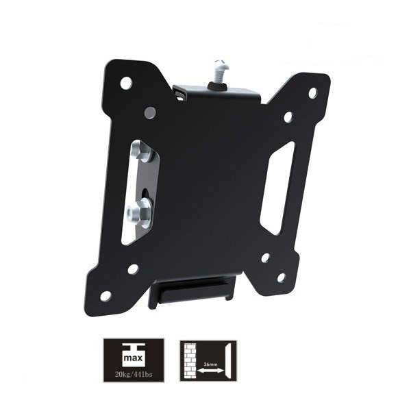 Držiak monitora TV Fiber Novelty FN203T Sklopný držiak na monitory a menšie televízie 13-30", VESA 75x75 a 100x100, náklon +10° až -15°, vzdialenosť od steny 36mm, nosnosť 20kg, záruka 5 rokov. Nástenný držiak na monitory a menšie televízie 13-30", ktorý umožní nastavenie náklonu obrazovky +10° až -15°. Zaveste monitor alebo TV je veľmi jednoduché a rýchle, rovnako tak aj samotná inštalácia držiaka na stenu. Držiak podporuje VESA štandardy 75x75 a 100x100, nosnosť 20kg. Farebné prevedenie čierne, záruka 5 rokov. Držiak na televízory a monitory Fiber Novelty FN203T - sklopný, VESA štandard 75x75 a 100x100 / drzakyastolky.cz Technické údaje: nosnosť 20kg na televízory a monitory s uhlopriečkou 13" až 30" podporuje VESA štandardy 75x75 a 100x100 umožňuje náklon +10° až -15° vzdialenosť TV od steny 36mm konštrukcia je oceľová veľmi pevný a bezpečný nástenný držiak zaistenie TV alebo monitoru proti vysadeniu veľmi jednoduchá a rýchla montáž súčasťou balenia je montážny materiál farebné prevedenie čierne záruka 5 rokov Nástenný sklopný držiak na monitory a menšie televízie 13-30" Fiber Novelty FN203T Držiak na TV a monitory FN203T podporuje VESA štandardy: VESA 75x75 VESA 100x100