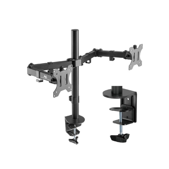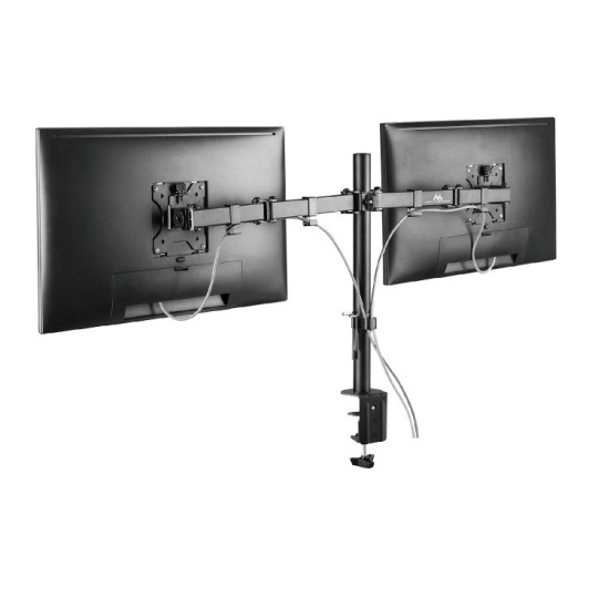 Držiak na 2 monitory Fiber Mounts M8C84 Držiak s uchytením na okraj stola na 2 monitory 15-30", nastaviteľná pozícia monitorov, kvalitná konštrukcia, VESA štandardy 75x75 a 100x100, nosnosť 16kg Držiak na zavešenie 2 monitorov a uchytenie na okraj stola. Jednoduchá inštalácia a nastavovanie monitorov do požadovaných pozícií. Držiak podporuje VESA štandardy 75x75 a 100x100 a zaviesť môžete monitory s celkovou hmotnosťou až 16kg. Držiak má kvalitnú konštrukciu, zavešenie monitorov je úplne spoľahlivé a bezpečné. Dodávame vrátane inštalačného materiálu. Záruka 5 rokov. Stolný držiak na 2 monitory Fiber Mounts M8C84 Technické údaje: nosnosť 16kg (2 x 8kg) na monitory s uhlopriečkou 15-30" podpora VESA štandardov 75x75 a 100x100 dĺžka stolovej tyče 390mm nastaviteľná výška ramien otáčanie do strán +/- 180° nasklopenie +/- 45° maximálna dĺžka ramien 397mm uchytenie na okraj stola, hrúbka stolovej dosky 10-88mm robustná kovová konštrukcia jednoduchá inštalácia, pevné a bezpečné zavešenie monitorov úchytky na káble inštalačný materiál farebné prevedenie čierne záruka 5 rokov Držiak na 2 monitory s uchytením na stôl Fiber Mounts M8C84 Držiak M8C84 podporuje VESA štandardy: VESA 75x75 VESA 100x100 Držiak je vhodný na monitory a displeje s uhlopriečkou 15-30", uchytenie držiaka je možné na stolové dosky hrúbky 10-88mm. Maximálna možné celkové zaťaženie je 16kg, 2 monitory po 8kg.
