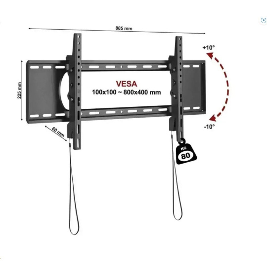 Držiak na televízor Fiber Novelty C5T Profesionálny sklopný držiak na stredne veľké aj rozmerné televízory / monitory 45" - 90", náklon +10° / -10°, vzdialenosť 60mm, automatické zabezpečenie TV proti vysadeniu, inštalačná plocha 885 x 225mm, inštalačný materiál, VESA 100x100 až 800x400, nosnosť 80kg Profesionálny naklápací držiak na stredne veľké aj rozmerné televízory, monitory a displeje s uhlopriečkou 45" až 90". Držiak vyniká pevnou konštrukciou s nosnosťou 80kg, veľkou inštalačnou plochou s mnohými otvormi na ukotvenie do steny. Vzdialenosť od steny je 60mm, čo zabezpečuje dostatočný priestor na odvetrávanie a umožňuje naklonenie TV až o +10° / -10°. Držiak podporuje VESA štandardy 100x100 až 800x400 a má systém automatického zabezpečenia TV na držiaku proti nechcenému vysadeniu. V balení nájdete inštalačný materiál, malú vodováhu a prehľadný manuál. Farebné prevedenie čierne, záruka 5 rokov. Nástenný držiak na televízie C5T umožňuje naklápanie až 10 stupňov nahor i nadol Technické údaje: nosnosť 80kg na TV / monitory / displeje s uhlopriečkou 45" až 90" podporuje VESA štandardy 100x100 až 800x400 vzdialenosť od steny 60mm možnosť naklápenia nahor i nadol +10° / -10° systém pre automatické zabezpečenie obrazovky na držiaku, uvoľnenie pomocou táhel kvalitná veľmi pevná konštrukcia inštalačná plocha 885 x 225mm, mnoho otvorov pre ukotvenie na stenu inštalačný materiál + vodováha farebné prevedenie čierne záruka 5 rokov Fiber Novelty C5T profesionálny sklápací držiak na televízory / monitory Držiak TV C5T podporuje VESA štandardy pre zavesenie: VESA 100x100 VESA 200x100 a 100x200 VESA 200x200 VESA 300x200 a 200x300 VESA 300x300 VESA 400x200 a 200x400 VESA 400x300 a 300x400 VESA 400x400 VESA 600x400 VESA 800x400 VESA držiak na TV na zavesenie na stenu C5T Držiaky C5T dodávame vrátane inštalačného materiálu: 4ks skrutky M6x14mm 4ks skrutky M6x30mm 4ks skrutky M8x16mm 4ks skrutky M8x35mm 4ks podložiek 4ks distančných válečkov 5mm 4ks distančných válečkov 15mm 6ks hmoždinky (cihla, betón, drevo) 6ks vrutov 1ks imbusový kľúč 4mm 1ks inštalačná mini-vodováha prehľadný inštalačný manuál Ak dodávaný inštalačný materiál nie je vhodný na uchytenie práve vašej obrazovky, je potrebné zakúpiť (hobby market) 4ks skrutiek požadovaného priemeru a dĺžky.