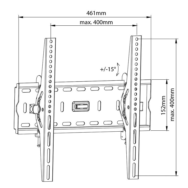 Držiak na TV s náklonom Fiber Mounts M7C78 Držiak na TV 26-60" s náklonom +15°/- 15°, vzdialenosť TV od steny 65mm, VESA štandardy 75x75 až 400x400, profesionálna konštrukcia, montážny materiál, vodováha, nosnosť 45kg, záruka 5 rokov Náklopný držiak na televízor aj monitory s vynikajúcou profesionálnou konštrukciou, ktorá je veľmi pevná a bezpečná. Držiak umožňuje naklonenie obrazoviek pod uhlom až +/-15°, potrebný uhol jednoducho zaistíte. Minimálna vzdialenosť televízora od steny je 65mm. Zavrieť možno televízory a monitory s hmotnosťou až 45kg, Obrazovku na držiaku ľahko zabezpečíte pomocou 2 bezpečnostných skrutiek. Balenie obsahuje montážny materiál. Nástenný držiak o rozmeroch 461x152mm je vybavený integrovanou vodováhou pre uľahčenie montáže držiaku na stenu. O kvalite držiaku svedčí aj predĺžená záruka na 5 rokov. Farebné prevedenie čierne. Výnimočný držiak na televízor s náklonom až 15 stupňov Fiber Mounts M7C78 Technické údaje: nosnosť 45kg na televízory a monitory s uhlopriečkou 26" až 60" (podľa VESA aj väčšie) podpora VESA štandardu 75x75 až 400x400 možnosť náklonu +/- 15° zaistenie obrazovky v požadovanom náklone vzdialenosť obrazovky od steny 65mm veľmi pevná oceľová konštrukcia robustné prevedenie najvyššej kvality montážny materiál súčasťou balenia integrovaná vodováha farba čierna záruka 5 rokov Nástenný držiak na zavedenie televízora a nastavenie jeho sklonu +/- 15° Fiber Mounts M7C78 Držiak na TV so naklápaním TV M7C78 je vhodný na všetky typy, značky a veľkosti televízorov (uhlopriečka nie je podstatná), ktoré majú hmotnosť maximálne 45kg a ktoré podporujú niektorý z nižšie uvedených VESA štandardov: VESA 75x75 VESA 100x100 VESA 200x100 alebo 100x200 VESA 200x200 VESA 300x100 alebo 100x300 VESA 300x200 alebo 200x300 VESA 300x300 VESA 400x100 alebo 100x400 VESA 400x200 alebo 200x400 VESA 400x300 alebo 300x400 VESA 400x400