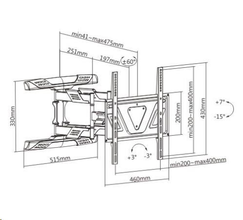 Špičkový nástenný držák s polohovaním TV 32-80", otočný, sklopný, výsuvný Nástenný držiak na televíziu, ktorý vyniká skvelou nastaviteľnosťou, výbornou konštrukciou a krásnym dizajnom. Vhodný je na všetky typy a značky televízií, ktorých hmotnosť nie je vyššia ako 45kg a ktoré podporujú VESA štandardy od 200x200 do 400x400. Unikátna konštrukcia držiaka umožňuje zasunutie televízie ku stene na vzdialenosť iba 41mm a maximálna vysunutie až na vzdialenosť 475mm. Otáčanie je možné na obe strany minimálne o 60°, náklon je pevných 15° nadol alebo 7° nahor. Držiak podporuje korekciu roviny obrazovky, konštrukcia je osadená krytmi pre vedenie káblov. Držiak Fiber Mounts Super-2 odporúčame aj náročným používateľom, vďaka svojej kvalite, dizajnu, nastaviteľnosti, kvalitnému spracovaniu a dostupnej cene je dostupný takmer pre každého. Fiber Mounts Super-2 je špičkový držiak na televízie 37-80" za skvelú cenu, vhodný nielen pre náročných používateľov Technické údaje: nosnosť 45kg podpora VESA štandardu 200x200 až 400x400 vhodný na televízie s uhlopriečkou 32" až 80" výsuvný, nastavenie vzdialenosti od steny 41mm až 475mm otočný do strán, minimálne +/- 60° náklopný, smerom nadol až o 15°, nahor až o 7° korekcia roviny obrazovky +/- 3° ultra tenká, silnostenná konštrukcia výborná bezpečnosť a stabilita bez provešenia ramien aj pri maximálnom zaťažení a maximálnom vysunutí krásny dizajn krytky pre vedenie káblov farebné prevedenie čierne záruka 5 rokov Nástenný výsuvný ultraslim držiak na TV Fiber Mounts Super-2 podporuje VESA štandardy: VESA 200x200 VESA 300x200 a 200x300 VESA 300x300 VESA 400x200 a 200x400 VESA 400x300 a 300x400 VESA 400x400