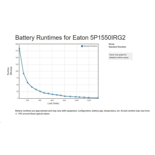 - UPS 5P môže merať energetickú spotrebu v kWh, ktorú je možné sledovať buď na LCD alebo pomocou softvéru Eaton Intelligent Power® Software Suite.