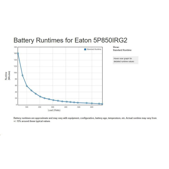 - UPS 5P môže merať energetickú spotrebu v kWh, ktorú je možné sledovať buď na LCD alebo pomocou softvéru Eaton Intelligent Power® Software Suite.