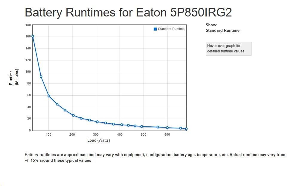 - UPS 5P môže merať energetickú spotrebu v kWh, ktorú je možné sledovať buď na LCD alebo pomocou softvéru Eaton Intelligent Power® Software Suite.