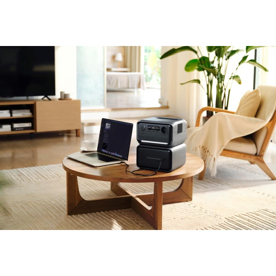 Táto sada obsahuje najvyššiu možnú variantu – RIVER 3 Plus spolu s prídavnou batériou Smart Extra Battery EB600 (572 Wh), čo dohromady zabezpečuje maximálnu kapacitu 858 Wh.