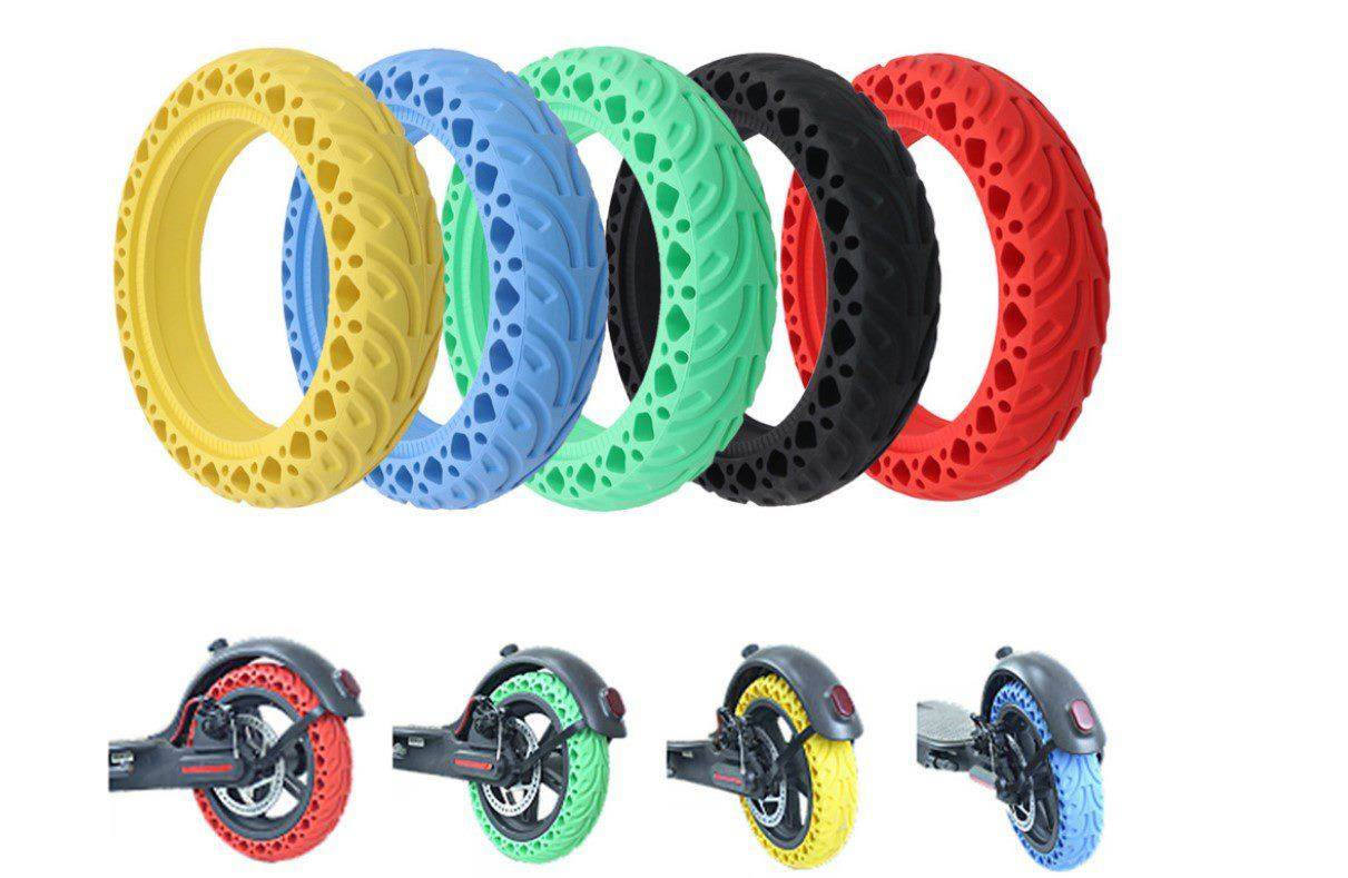 Pevná bezdušová pneumatika je speciálně určená na elektrickou koloběžku. Jedná se o velice univerzální pneumatiku, která je kompatibilní nejen se všemi koloběžkami Scooter, ale také s ostatními značkami koloběžek, které disponují velikostí pneumatik 8,5“ x 2“. Vyrobená je z velmi kvalitního materiálu, díky čemuž je vysoce odolná a na cestách vás nikde nenechá. Jelikož se jedná o pevnou bezdušovou pneumatiku, není třeba se na Vašich cestách obávat propíchnutí duše či ucházení vzduchu z Vašich pneumatik. Pneumatika je vhodná pro přední i zadní kolo a její Instalací na koloběžku Vás krok po kroku provede videonávod. S použitím správných nástrojů tuto instalaci zvládnete i vy.