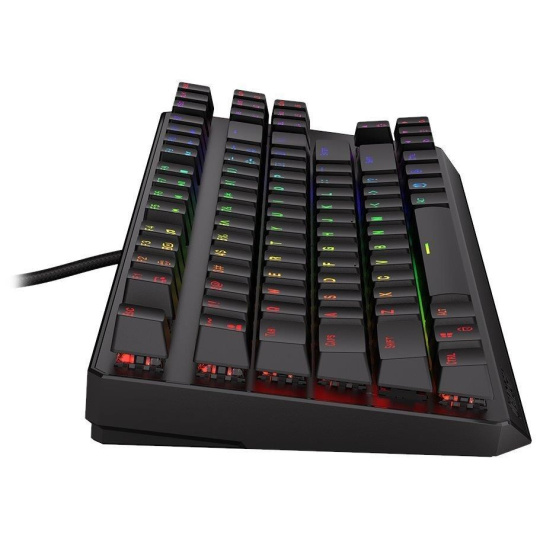 Kompaktná mechanická klávesnica pre každého vášnivého hráča. Vďaka spínačom Kailh Blue ponúka výbornú odozvu a výdrž presne 50 miliónov stiskov. Konštrukcia klávesnice z hliníku vykazuje iba tú najvyššiu možnú odolnosť a stabilitu. Klávesy sú RGB podsvietené a ponúkajú možnosť vlastného nastavenia. Klávesy sú navyše tiež plne programovateľné, vďaka čomu je možné klávesnicu individualizovať presne podľa potrieb hráča a hraného hry. Samozrejme nechýba ani funkcia Anti-Ghosting a N-Key rollover. Pripojenie je realizované prostredníctvom odnímateľného USB kábla.