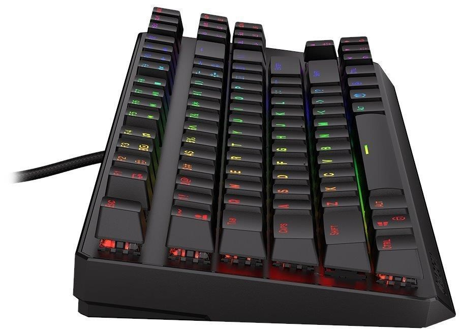 Kompaktná mechanická klávesnica pre každého vášnivého hráča. Vďaka spínačom Kailh Blue ponúka výbornú odozvu a výdrž presne 50 miliónov stiskov. Konštrukcia klávesnice z hliníku vykazuje iba tú najvyššiu možnú odolnosť a stabilitu. Klávesy sú RGB podsvietené a ponúkajú možnosť vlastného nastavenia. Klávesy sú navyše tiež plne programovateľné, vďaka čomu je možné klávesnicu individualizovať presne podľa potrieb hráča a hraného hry. Samozrejme nechýba ani funkcia Anti-Ghosting a N-Key rollover. Pripojenie je realizované prostredníctvom odnímateľného USB kábla.