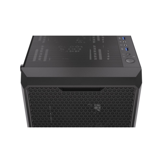 Skriňa formátu Middle Tower s priehľadnou bočnicou z tvrdeného skla ponúka dve 2,5" pozície pre SSD disky a dve 3,5" pozície pre pevné disky. Na hornej časti sa nachádza dva USB 3.0 porty, výstup na sluchátka a vstup na mikrofón. Vybavená je štyrmi 120 mm ventilátormi, ktoré spolu s perforovaným čelným panelom zabezpečujú dostatočné prúdenie vzduchu. Vo skrini je dostatok miesta pre chladič CPU do výšky až 162 mm a grafickú kartu o dĺžke až 370 mm. Dodáva sa bez zdroja. Súčasťou je tiež sada prachových filtrov.