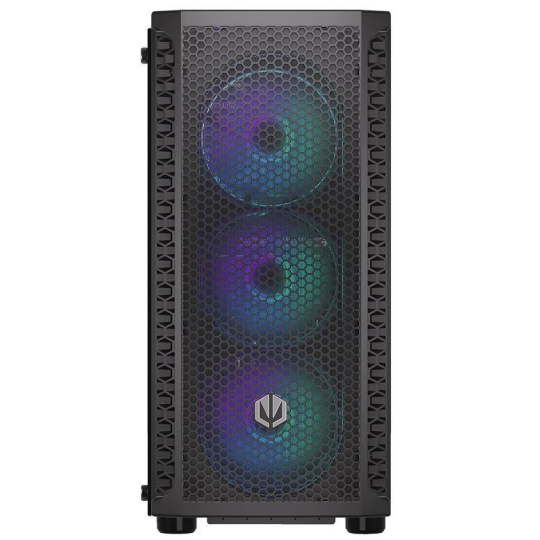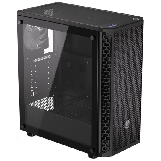 Skriňa formátu Middle Tower s priehľadnou bočnicou z tvrdeného skla ponúka dve 2,5" pozície pre SSD disky a dve 3,5" pozície pre pevné disky. Na hornom paneli sa nachádzajú dva USB 3.0 porty, slúchadlový výstup a audio vstup pre mikrofón. Je vybavená štyrmi 120 mm ventilátormi s ARGB podsvietením, ktoré spolu s perforovaným čelným panelom zabezpečujú dostatočné prúdenie vzduchu. Nápadité riešenie umožňuje pohodlné umiestnenie až 360 mm dlhého výmeníka vodného chladenia na prednej strane. Vo skrini je dostatok priestoru pre chladič CPU do výšky až 161 mm a grafickú kartu dlhú až 350 mm. Dodáva sa bez zdroja. Súčasťou je tiež sada prachových filtrov.