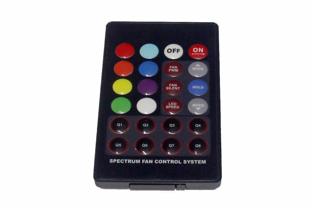 - diaľkové ovládanie (možnosť voľby farby alebo efektu podsvietenia s možnosťou vypnutia, riadenie otáčok ventilátorov s možnosťou vypnutia)