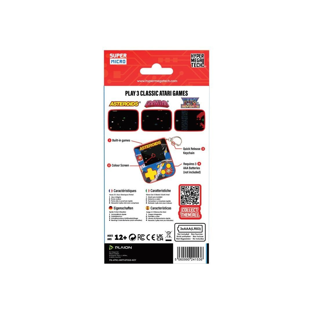 Retro hranie v mikro rozmeroch vďaka kľúčenke Super Micro Asteroids Keychain Gamer od HyperMegaTech! Obsahuje tri skvelé hry od Atari: Asteroids, Gravitar a Yars Revenge. Dvoupalcová obrazovka RGB umožňuje maximálnu hrateľnosť a ovládanie hlasitosti na správnu mieru z nej robí viac než len cetku. Vyžaduje 3 batérie AAA (nie sú súčástou balenia).