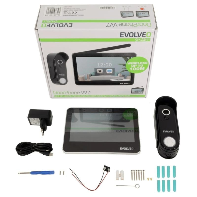 EVOLVEO DoorPhone W7, Sada domácího bezdrátového videotelefonu s WiFi černý monitor