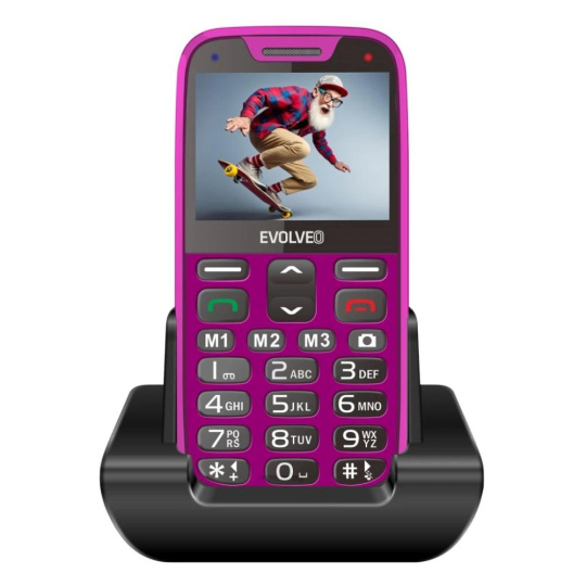 EVOLVEO EasyPhone XR, mobilní telefon pro seniory s nabíjecím stojánkem, růžová