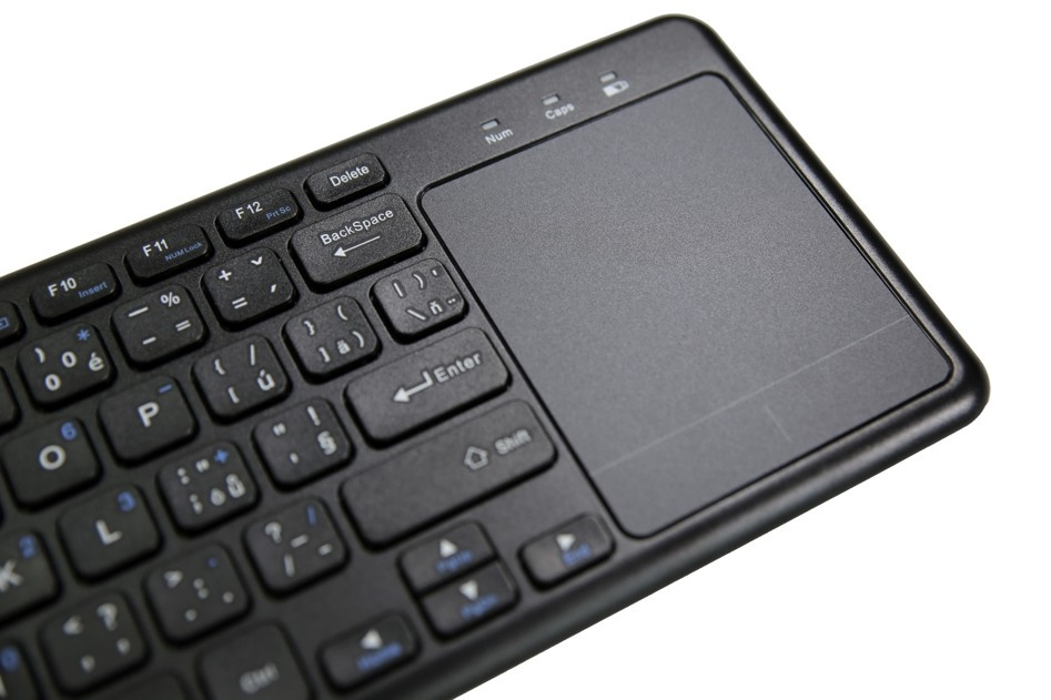 Všestrannosť 2.4GHz bezdrôtová klávesnica s touchpadom. Ideálne na ovládanie Smart TV, multimediálnych centier, počítačov HTPC atď. Ak chcete počítač ovládať na diaľku, môžete ho používať aj s prenosným alebo klasickým počítačom.