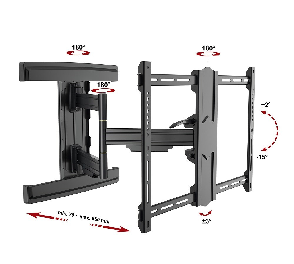 Výborný držiak na televíziu Fiber Novelty Norton Nástenný držiak TV 43"-80" výborné spracovanie, vzdialenosť od steny 70-650mm, otočný +/-90°, sklon +2°/-15°, VESA 200x100 až 600x400, nosnosť 50kg Záleží Vám na kvalite, a zároveň aj na dizajne a v neposlednom rade na rozumnej cene? Držiak Fiber Novelty Norton spĺňa všetky tieto požiadavky. Nástenný polohovateľný držiak na zavesenie televízorov s uhlopriečkami 43" až 80" a úplne bezpečnou nosnosťou 50kg (držák bol testovaný pri zaťažení 120kg). Plné nastavenie polohy televízora s možnosťou každodennej zmeny polohy - otáčanie do strán, sklápanie, nastavenie vzdialenosti od steny, korekcia roviny. Všetko v úplne úžasnom dizajne, ktorý určite ocení každý. Na držiak je poskytnutá záruka 3 roky. Držiak QLED OLED LED LCD plazma TV v výbornom spracovaní - Fiber Novelty Norton Technické údaje: nosnosť 50kg na televízory a monitory s uhlopriečkou 43" až 80" na všetky typy a značky televízorov, ktoré podporujú VESA štandardy podporuje VESA štandardy v rozmedzí 200x100 až 600x400 nastaviteľná vzdialenosť od steny v rozmedzí 70mm až 650mm otáčanie TV do strán +/- 90° sklápanie TV v rozmedzí +2° až -15° korekcia roviny obrazovky +/- 3° krásny moderný dizajn profesionálna konštrukcia, úplná bezpečnosť a spoľahlivosť precízne spracovanie s dôrazom na detail krytky na káble a na nástený úchyt dodávané vrátane inštalačného materiálu farebné prevedenie čierne záruka 5 rokov Držiak na televízie a monitory Fiber Novelty Norton Podporované VESA štandardy na zavesenie televízorov: VESA 200x100 VESA 200x200 VESA 300x100 VESA 300x200 a 200x300 VESA 300x300 VESA 400x200 a 200x400 VESA 400x300 a 300x400 VESA 400x400 VESA 500x300 VESA 600x400 všetky aj nestandardné VESA rozmerov v rozmedzí 200x100 až 600x400 Precízne spracovanie s dôrazom na detail, krásny dizajnový vzhľad a najvyššia miera spoľahlivosti a bezpečnosti - to sú hlavné prednosti držiakov Fiber Novelty Norton. Profesionálny držiak na televízie Fiber Novelty Norton Držiaky Fiber Novelty Norton sú vhodné na zavesenie všetkých dostupných typov televízorov aj monitorov: zavesenie LED televízorov zavesenie LCD televízorov zavesenie OLED televízorov zavesenie QLED televízorov zavesenie zakrivených Curved televízorov zavesenie plazmových televízorov zavesenie LCD, LED monitorov zavesenie TFT monitorov zavesenie špeciálnych televízorov a monitorov
