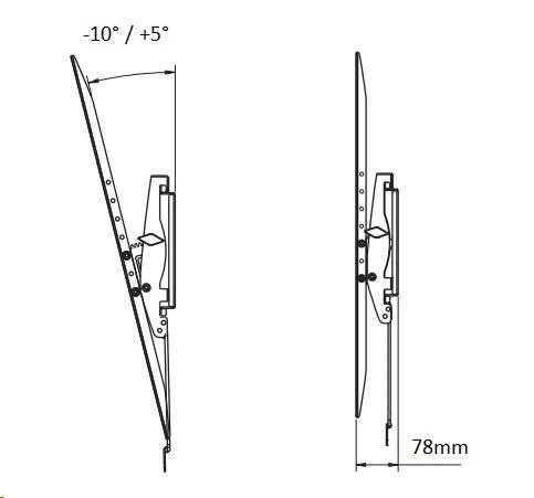 Sklopný držiak na TV 55" až 90" a podporou VESA štandard 200x200 až 800x600, nosnosť 90kg LCD držiak TV sklopný Fiber Mounts D90 Nová generácia špičkových sklopných držiakov, pri ktorých je kladený dôraz na najvyššiu kvalitu, absolútnu bezpečnosť a funkčnosť. Držiaky umožňujú náklon obrazovky v rozmedzí +5° až -10°, náklon je možné samozrejme zabezpečiť v požadovanej polohe. Držiak podporuje štandardizované zavešenie obrazoviek, VESA štandard 200x200 až 800x600. Bezpečnosť je zabezpečená automatickým systémom dvoch západiek, ktoré zabezpečia obrazovku proti vysadeniu alebo náhodnému pádu ihneď po nasadení na držiak. Uvoľnenie je potom možné pomocou dvoch táhel, ktoré schováte za obrazovkou. Bezpečnosť zvyšuje aj kvalitný materiál a robustná oceľová konštrukcia. Nosnosť držiaka je certifikovaná na maximálne zaťaženie až 90kg. Vzdialenosť obrazovky od steny je 78mm. Dodávame v čiernom prevedení. Na držiak je poskytovaná záruka 10 rokov. Technické údaje: maximálne zaťaženie 90kg na obrazovky s uhlopriečkou 55" až 90" podpora VESA štandardov 200x200 až 800x600 náklon obrazovky nahor až +5° náklon obrazovky nadol až -10° zabezpečenie obrazovky v požadovanom uhle sklonu Vzdialenosť TV od steny 78mm automatický systém zabezpečenia obrazovky proti vysadeniu a náhodnému pádu uvoľnenie pomocou 2 táhel, ktoré sú schované za obrazovkou kvalitná bezpečná konštrukcia robustný materiál TOP kvalita, profesionálne spracovanie, 100% funkčnosť farba čierna záruka 10 rokov Držiak podporuje VESA štandardy: VESA 200x200 VESA 300x200 a 200x300 VESA 300x300 VESA 400x200 a 200x400 VESA 400x300 a 300x400 VESA 400x400 VESA 600x400 a 400x600 VESA 800x400 VESA 800x600