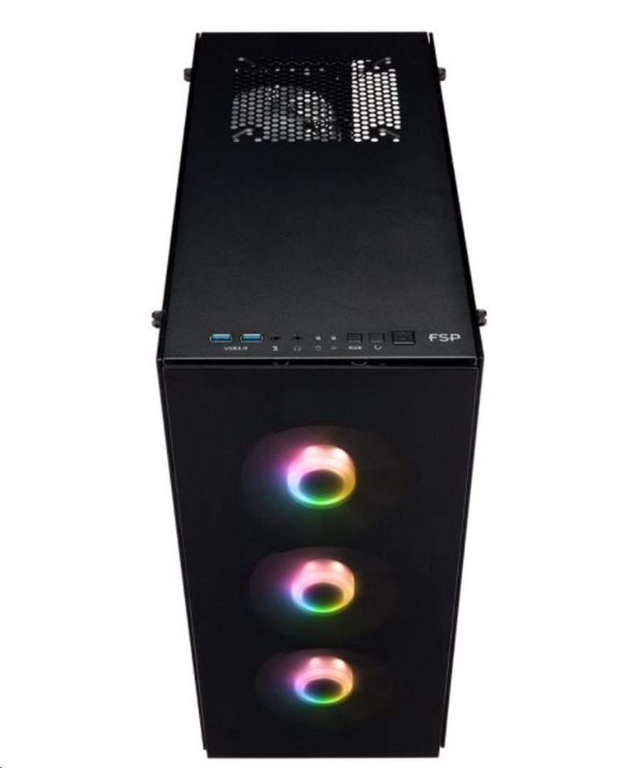 FSP/Fortron ATX Midi Tower CMT512 Black, priehľadný bočný panel, 4 x A.RGB LED 120 mm ventilátor