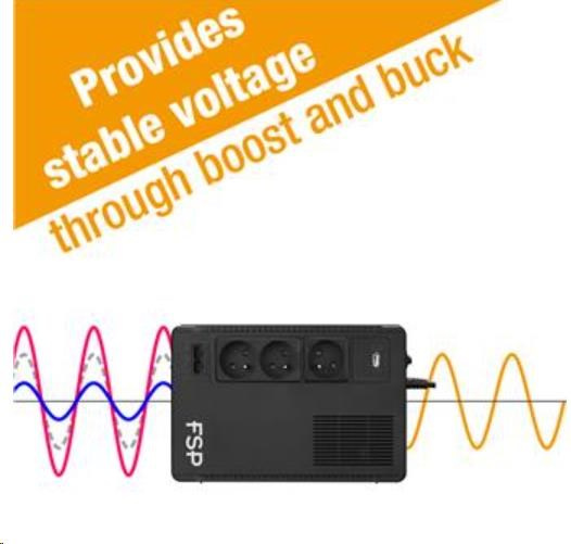 FSP/Fortron UPS ECO 800 FR, 800 VA / 480 W, USB, RJ45, interaktívna linka