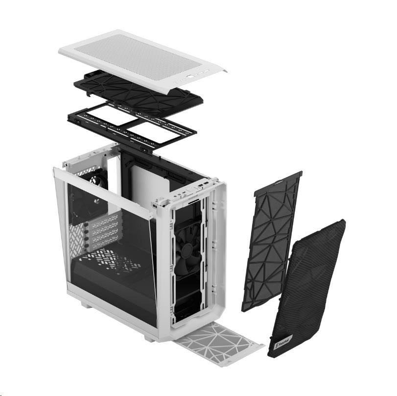 FRACTAL DESIGN skříň Meshify 2 Mini White TG Clear Tint, USB 3.1 Type-C, 2x USB 3.0, bez zdroje, mATX
