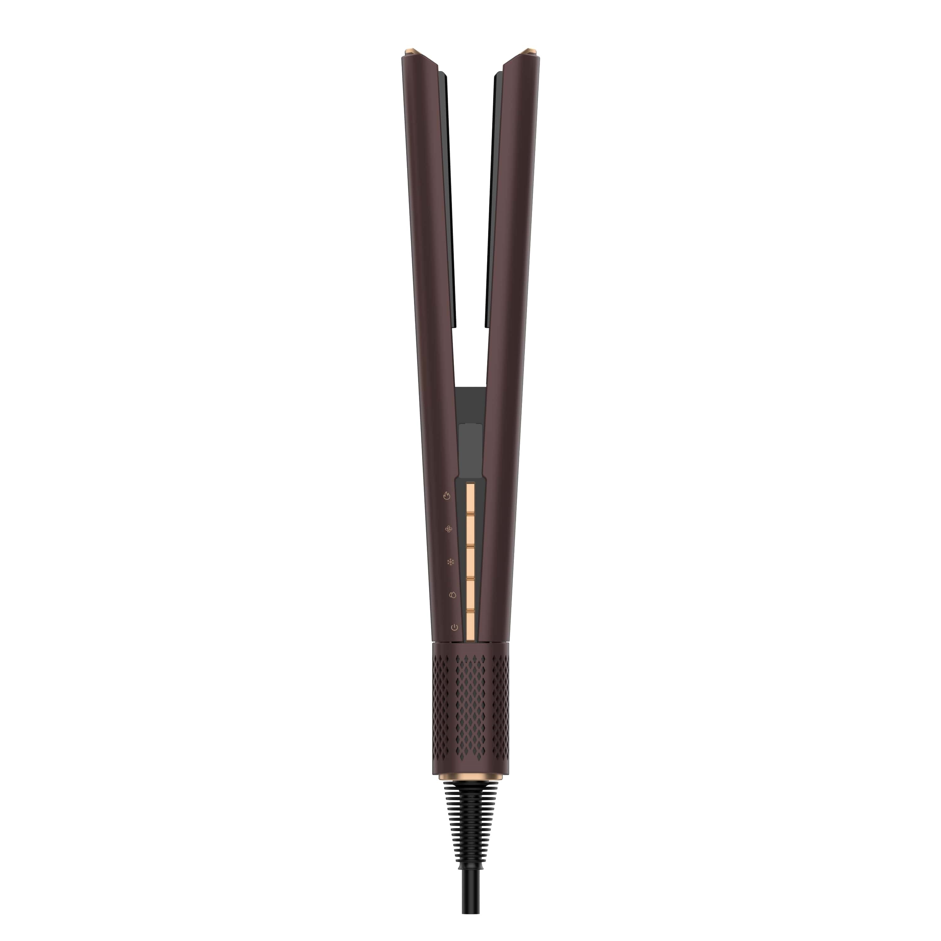 Místo tradičních horkých destiček pracuje s přesně řízeným proudem teplého i studeného vzduchu. Díky tomu můžete vlasy narovnávat ihned po umytí – rychle, pohodlně a bez rizika poškození.