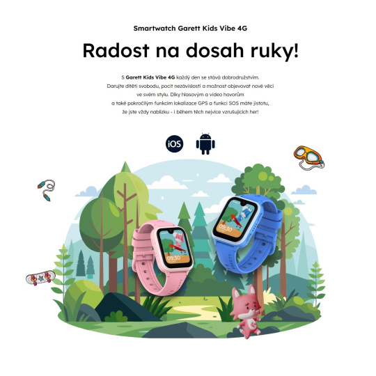 S Garett Kids Vibe 4G sa každý deň stáva dobrodružstvom. Darujte dieťaťu slobodu, pocit nezávislosti a možnosť objavovať nové veci po svojom. Vďaka hlasovým a video hovorom, ako aj pokročilým funkciám lokalizácie GPS a SOS máte istotu, že ste vždy nablízku – aj počas tých najnapínavejších hier!