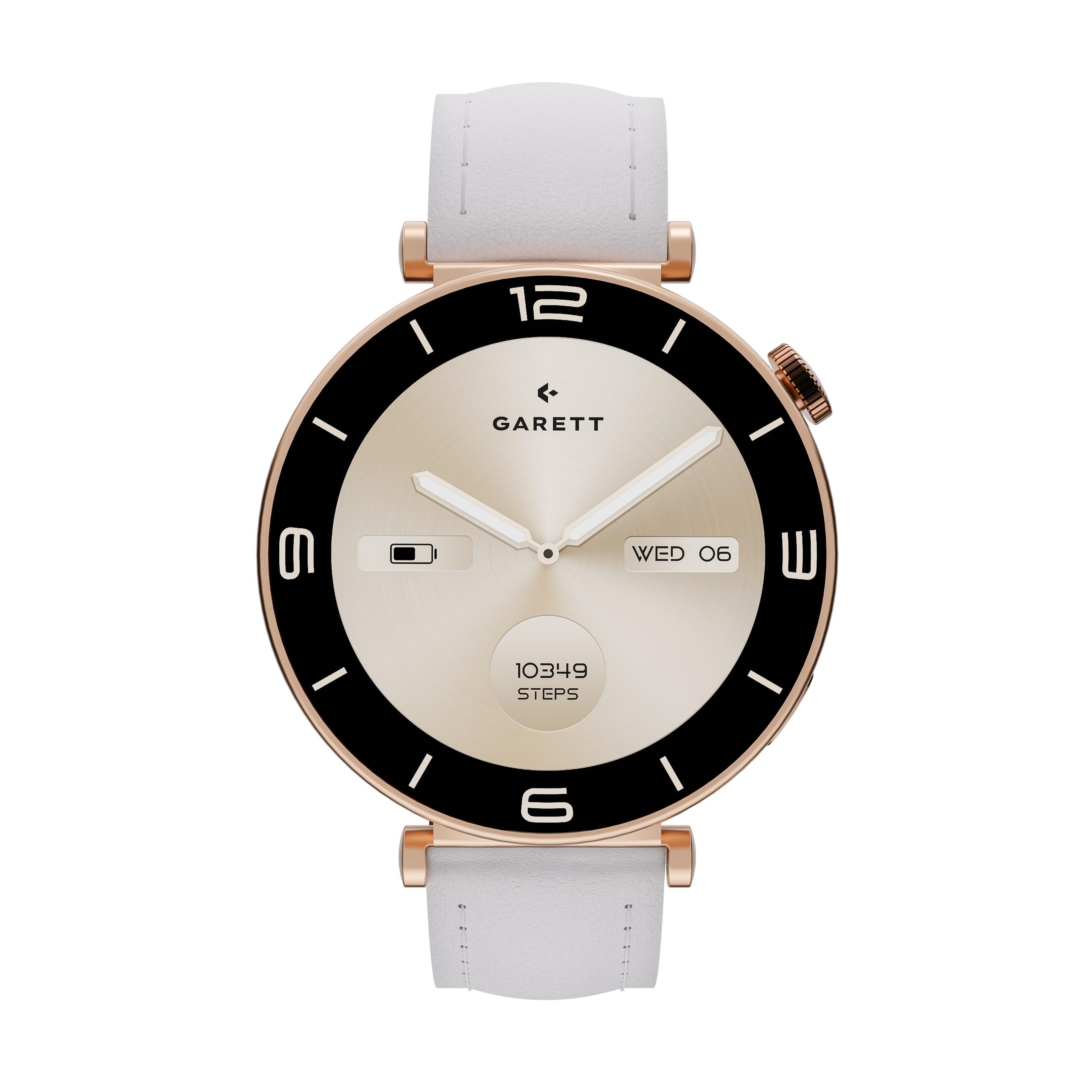 Garett Rose je vybavený otočným funkčným gombíkom, ktorý uľahčuje pohyb v menu a výber možností. Garett Rose spolupracuje s aplikáciou Garett Smart, ktorá umožňuje plnú integráciu so systémami Android a iOS. Aj vďaka novej aplikácii Garett máte istotu, že vaše dáta sú v bezpečí a všetky funkcie hodiniek sú plne prispôsobené vašim potrebám.