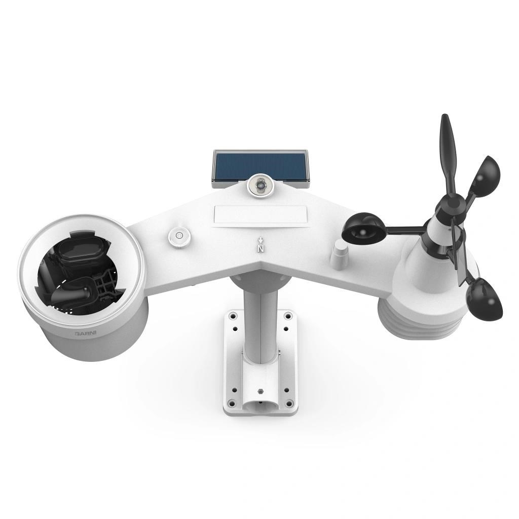 Integrovaný bezdrôtový senzor 7-v-1 GARNI 1NG meria vonkajšiu teplotu a relatívnu vlhkosť, rýchlosť a smer vetra, dažďové zrážky, UV index a slnečné žiarenie, a údaje sú odosielané do hlavnej jednotky až do vzdialenosti 150 m (v otvorenom priestore).