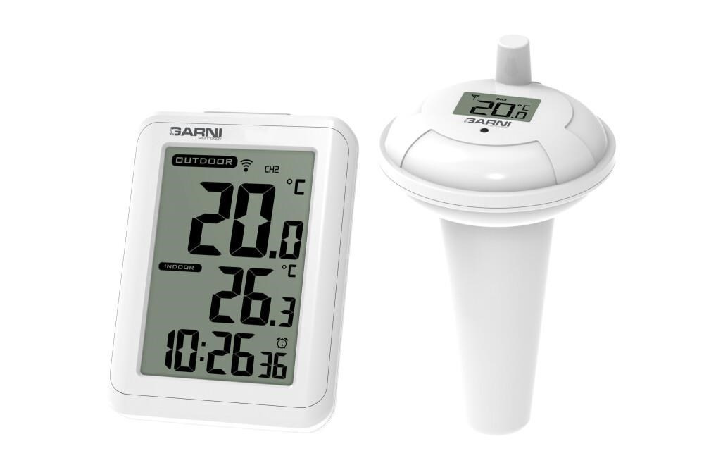 Digitálny teplomer s bazénovým čidlom GARNI 245P na meranie teploty vody zobrazuje tiež teplotu na mieste hlavnej jednotky a čas. Bezdrôtové bazénové čidlo GARNI 065P je kompatibilné s meteorologickými stanicami GARNI 612 Precise, GARNI 615W Precise, GARNI 615B Precise, GARNI 618W Precise a GARNI 618B Precise.