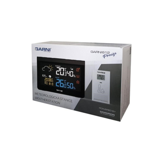 Presná meteorologická stanica s invertujúcim farebným VA displejom s časom a dátumom riadenými rádiovým signálom DCF-77, budíkom, meraním vnútornej teploty, relatívnej vlhkosti, barometrického tlaku a bezdrôtovým čidlom na meranie vonkajšej teploty a relatívnej vlhkosti. Na dosiahnutie vysokej presnosti merania teploty a relatívnej vlhkosti sú použité špičkové čidlá švajčiarskej značky SENSIRION