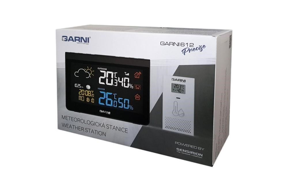 Presná meteorologická stanica s invertujúcim farebným VA displejom s časom a dátumom riadenými rádiovým signálom DCF-77, budíkom, meraním vnútornej teploty, relatívnej vlhkosti, barometrického tlaku a bezdrôtovým čidlom na meranie vonkajšej teploty a relatívnej vlhkosti. Na dosiahnutie vysokej presnosti merania teploty a relatívnej vlhkosti sú použité špičkové čidlá švajčiarskej značky SENSIRION