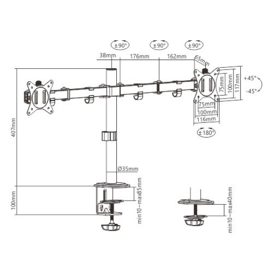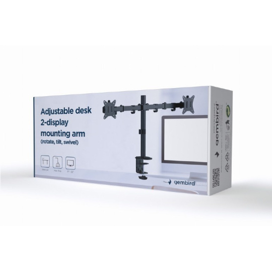 GEMBIRD Držák 2 monitorů na stůl MA-D2-01, naklápěcí, až do 32” a 9kg, černý