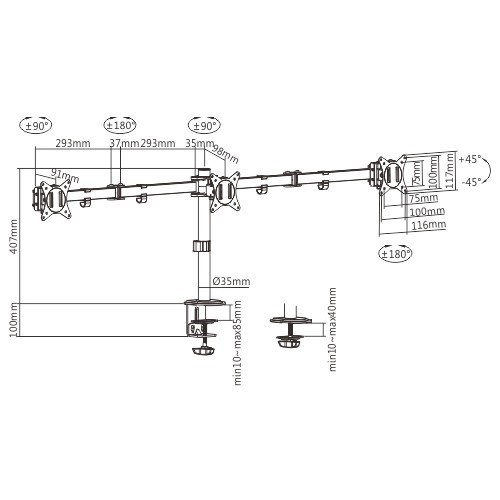 • Stolový držiak monitora s trojitým ramienkom monitoru