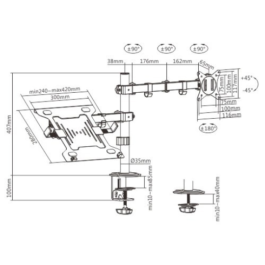 • Držiak na stôl s ramenom monitora a stojanom na notebook