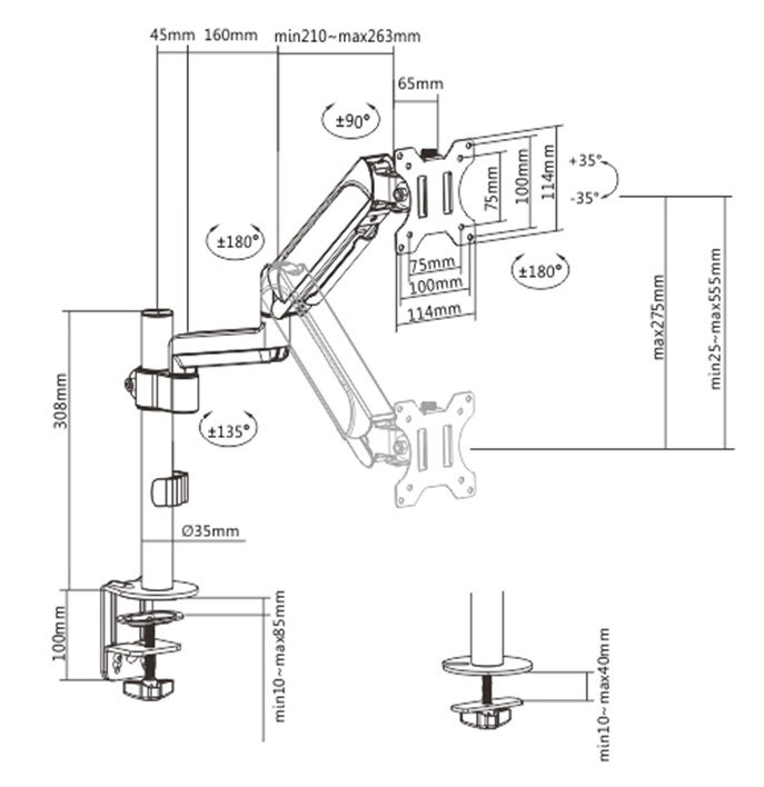 • Odolné nastaviteľné plynové pružiny vhodné pre monitory 1 - 9 kg