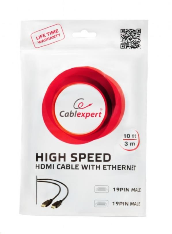 GEMBIRD CABLEXPERT HDMI-HDMI kábel 3 m, 1.4, M/M tienené, pozlátené kontakty, biele