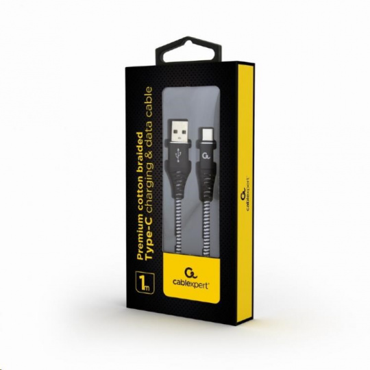 GEMBIRD CABLEXPERT USB 2.0 Kábel AM na typ C (AM/CM), 1 m, opletený, čiernobiely, blister, PREMIUM KVALITA
