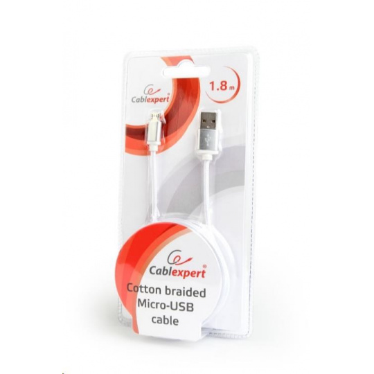 GEMBIRD Kábel CABLEXPERT USB A samec/Micro B samec 2.0, 1,8 m, opletené, strieborné, blister
