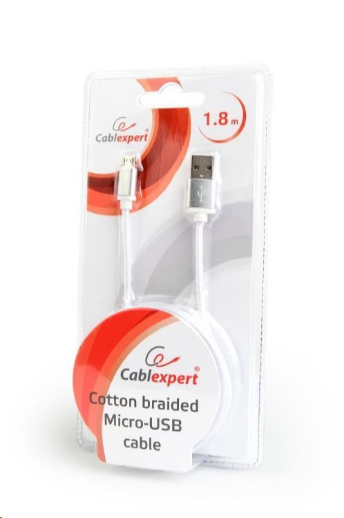 GEMBIRD Kabel MicroUSB - USB, opletený, stříbrný, 180cm