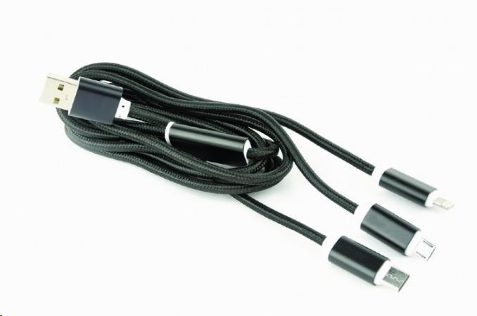 GEMBIRD kábel CABLEXPERT USB A Male/Micro B + Type-C + Lightning, 1 m, opletený, čierny, blister