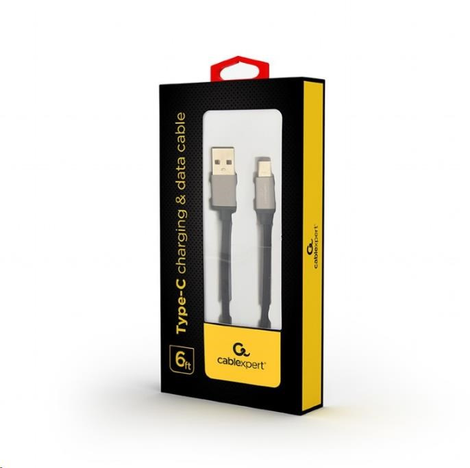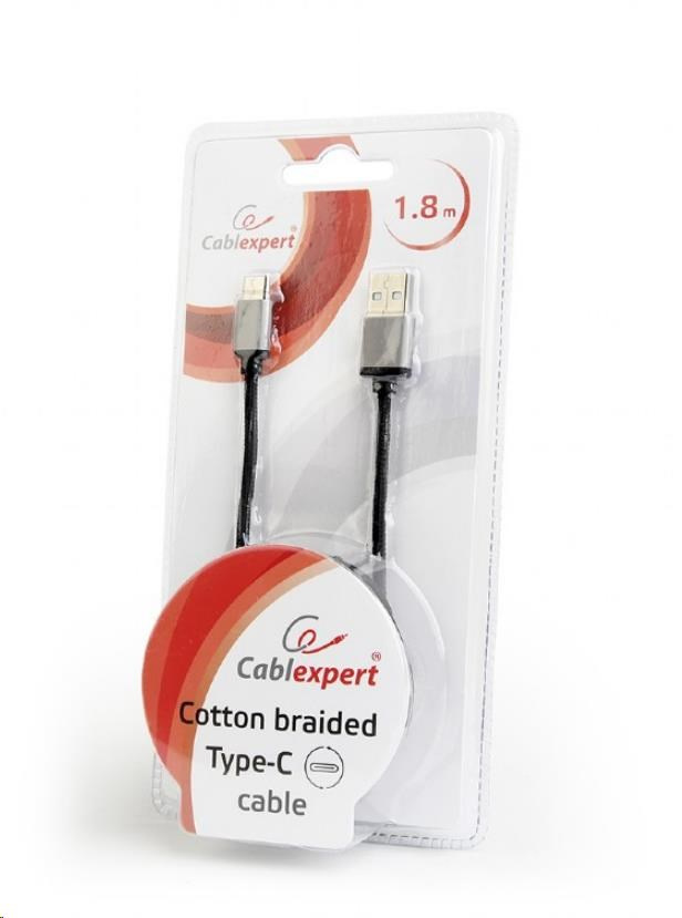 GEMBIRD CABLEXPERT kábel USB na USB-C (AM/CM), 1,8 m, opletený, čierny, blister