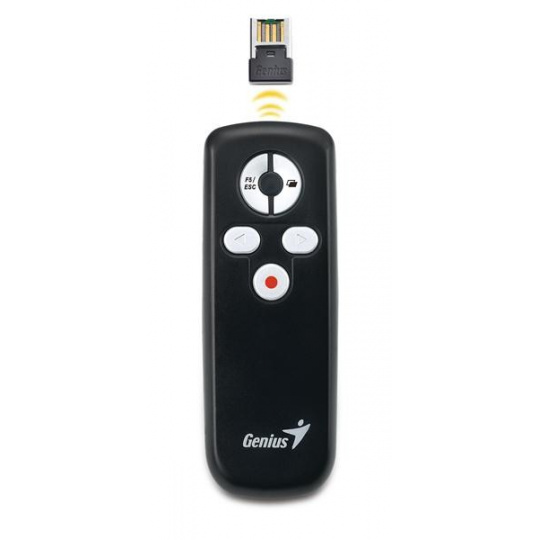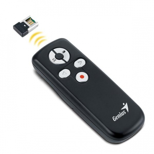 Úplne nový Media Pointer 100 od spoločnosti Genius je dokonalým nástrojom na používanie pri prezentáciách. Pokročilá bezdrôtová technológia 2,4 GHz poskytuje prevádzkový dosah až 10 metrov bez rušenia. Je to užitočný nástroj na stretnutia, prejavy alebo školenia na cestách.