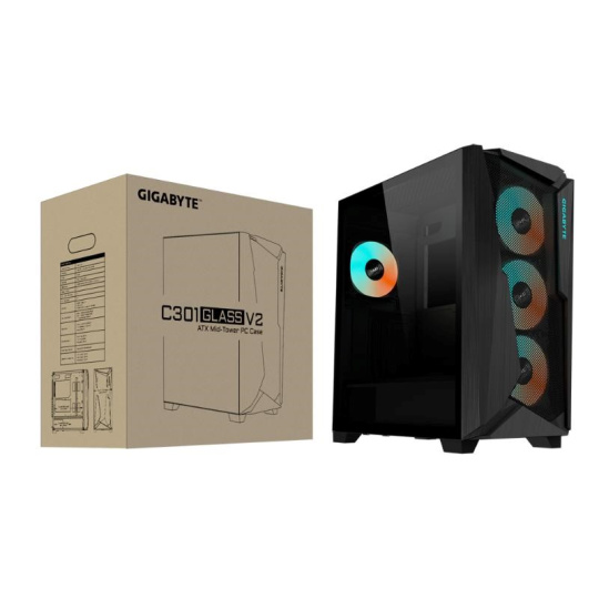GIGABYTE case GB-C301G V2, Mid Tower, 1xUSB-C 3.2, 2xUSB 3.0, ARGB Hub, 4x 120mm ARGB Fan, černá
