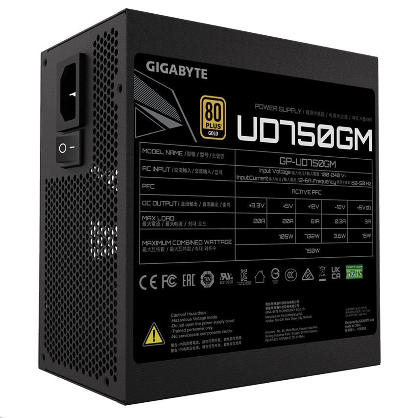 Napájací zdroj GIGABYTE UD750GM, 750W, 80+ Gold, 120mm ventilátor
