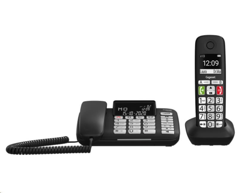 - tieto dve dokonale zladené zariadenia fungujú ako kombinovaná súprava a zaručujú maximálnu voľnosť pohybu vďaka prepojeniu káblového telefónu na pevnom mieste s flexibilným slúchadlom