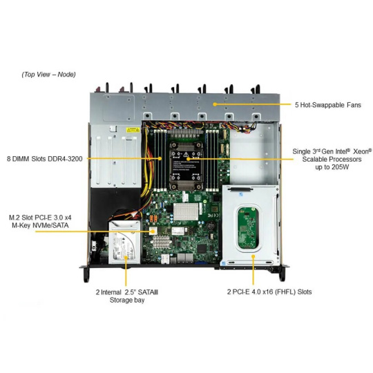 | Procesor | 1x Socket P+ (LGA-4189) pre 3. generáciu Intel® Xeon® Scalable procesorov, až 32 jadier / 64 vlákien, až 48MB cache, TDP 85W - 205W |