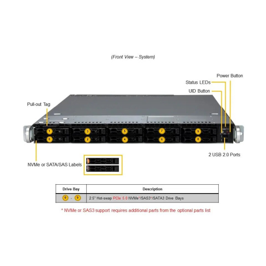 Supermicro SYS-111C-NR je výkonný 1U rackový server optimalizovaný pre databázové aplikácie a podnikovén výpočty. Tento systém využíva procesory Intel Xeon Scalable 4. generácie a podporuje vysokorýchlostnú DDR5 pamäť, čo zabezpečuje spoľahlivý výkon a škálovateľnosť pre širokú škálu pracovných záťaží.